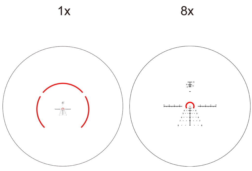 - 8x Zoom Factor, Ture 1x Power For Both-Eyes-Open Shooting Allows for a Wide Field of View