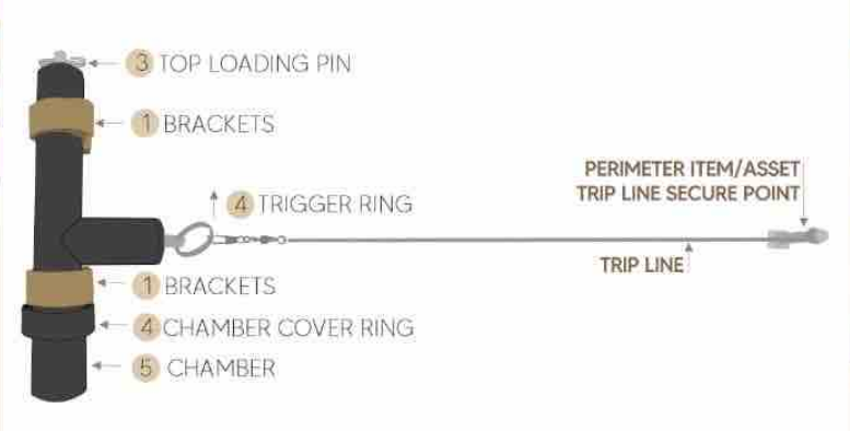 - Connect trip wire & asset & trigger ring (2) and tension.