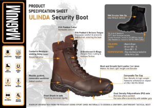 Constructed from a combination of smooth split genuine leather and breathable mesh, this boot offers great comfort and durability. Its EVA foam padded collar and bellowed tongue offer even greater comfort and support. Donning and Doffing is made easier by the use of its YKK side zip.