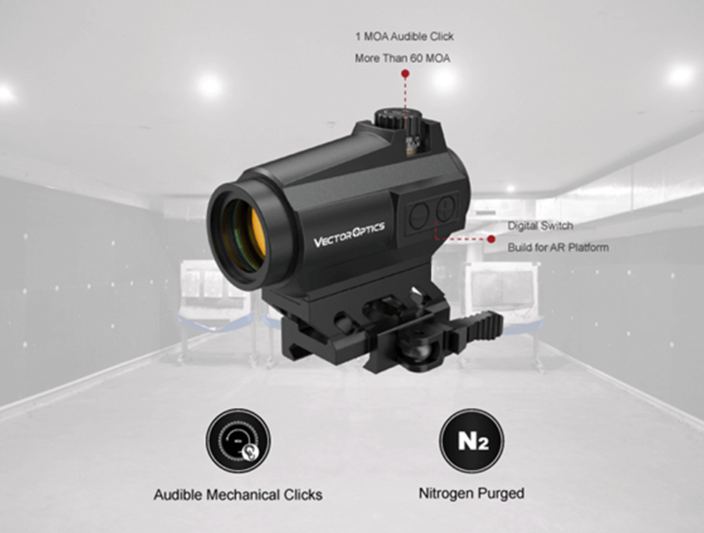 - Free Accessories: Cantilever QD Picatinny mount, low Picatinny mount, flip-up cap, hex keys and cleaning cloth etc.
