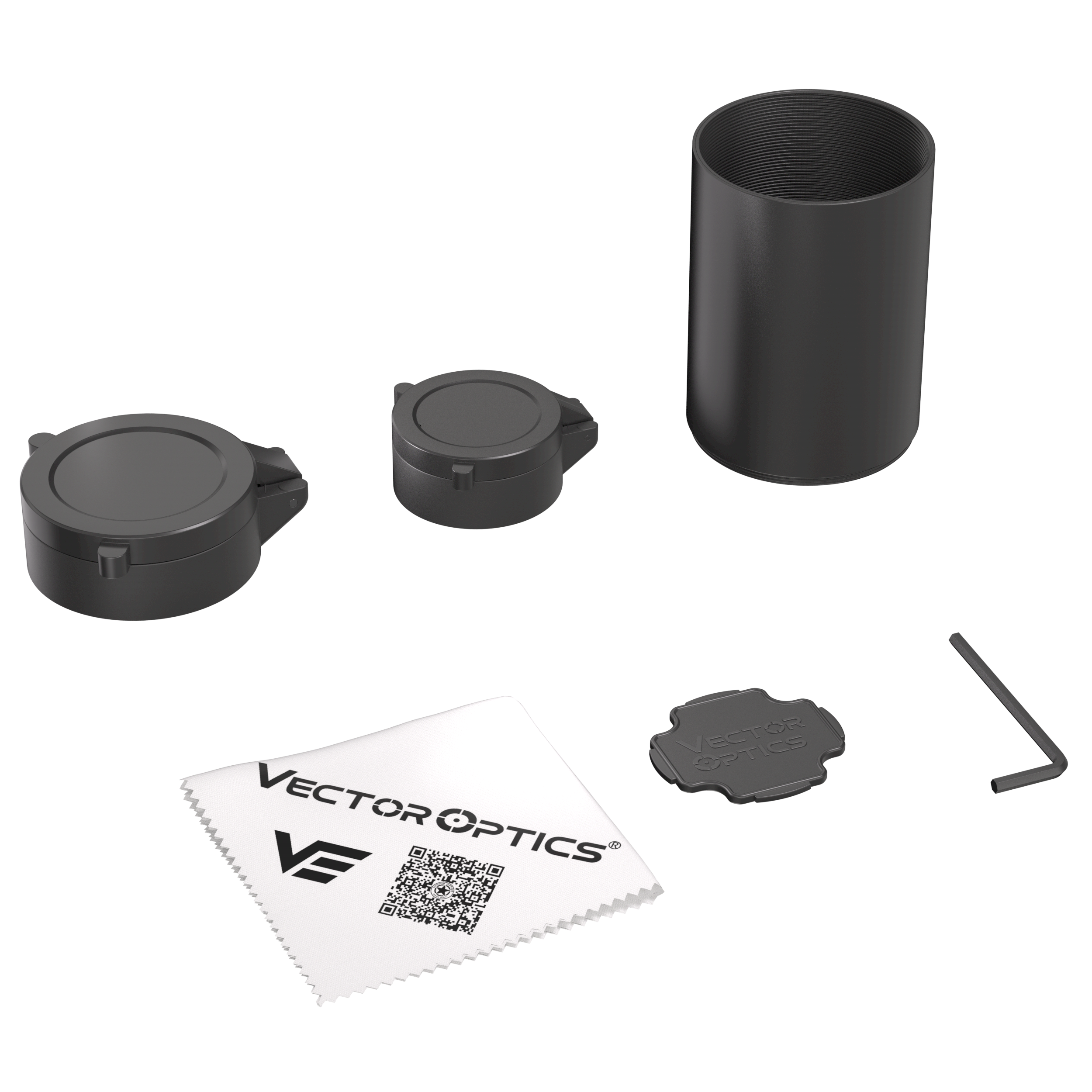 - Items in the Package: User Manual, Plastic Wrench, Cleaning Cloth, Flip-up Caps, Sunshade, Hex Key, etc.