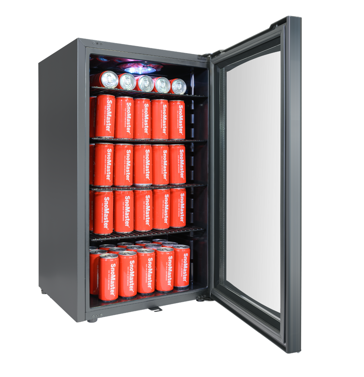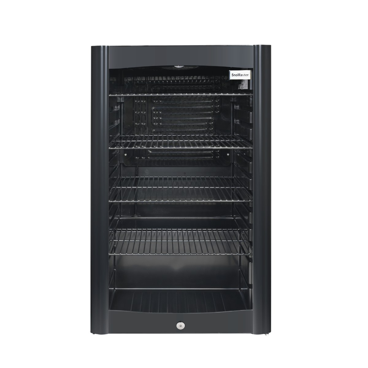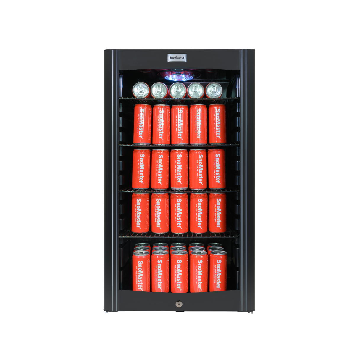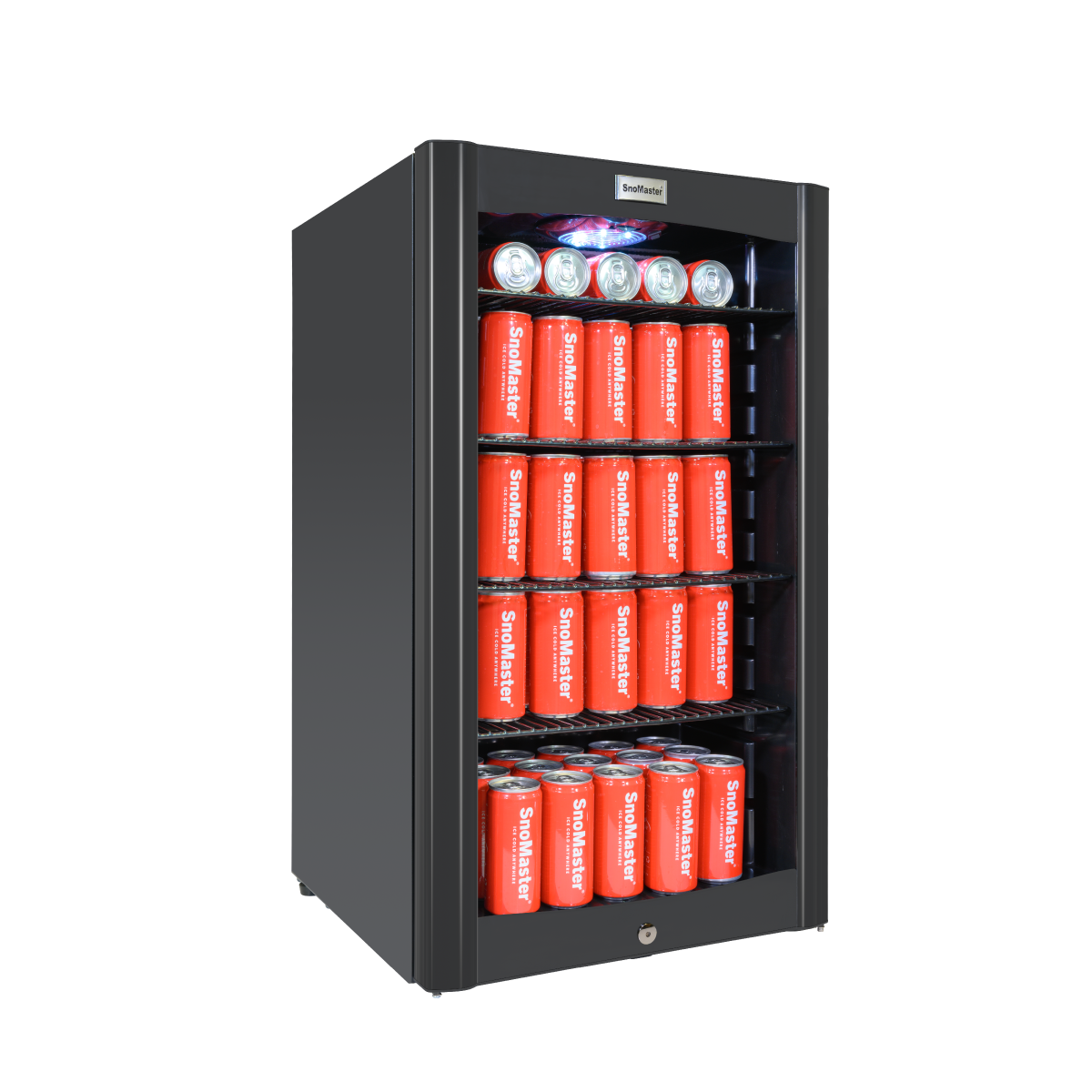 Introducing the SM-100CLASSIC, where timeless design meets exceptional cooling. Crafted in our sleek black finish and driven by SnoMaster’s renowned cooling technology, this beverage cooler effortlessly complements your kitchen, home bar, or office space. Featuring a secure reversible, lockable tempered glass door and an interior LED light, it combines style and functionality to store and display your beverages with elegance.