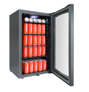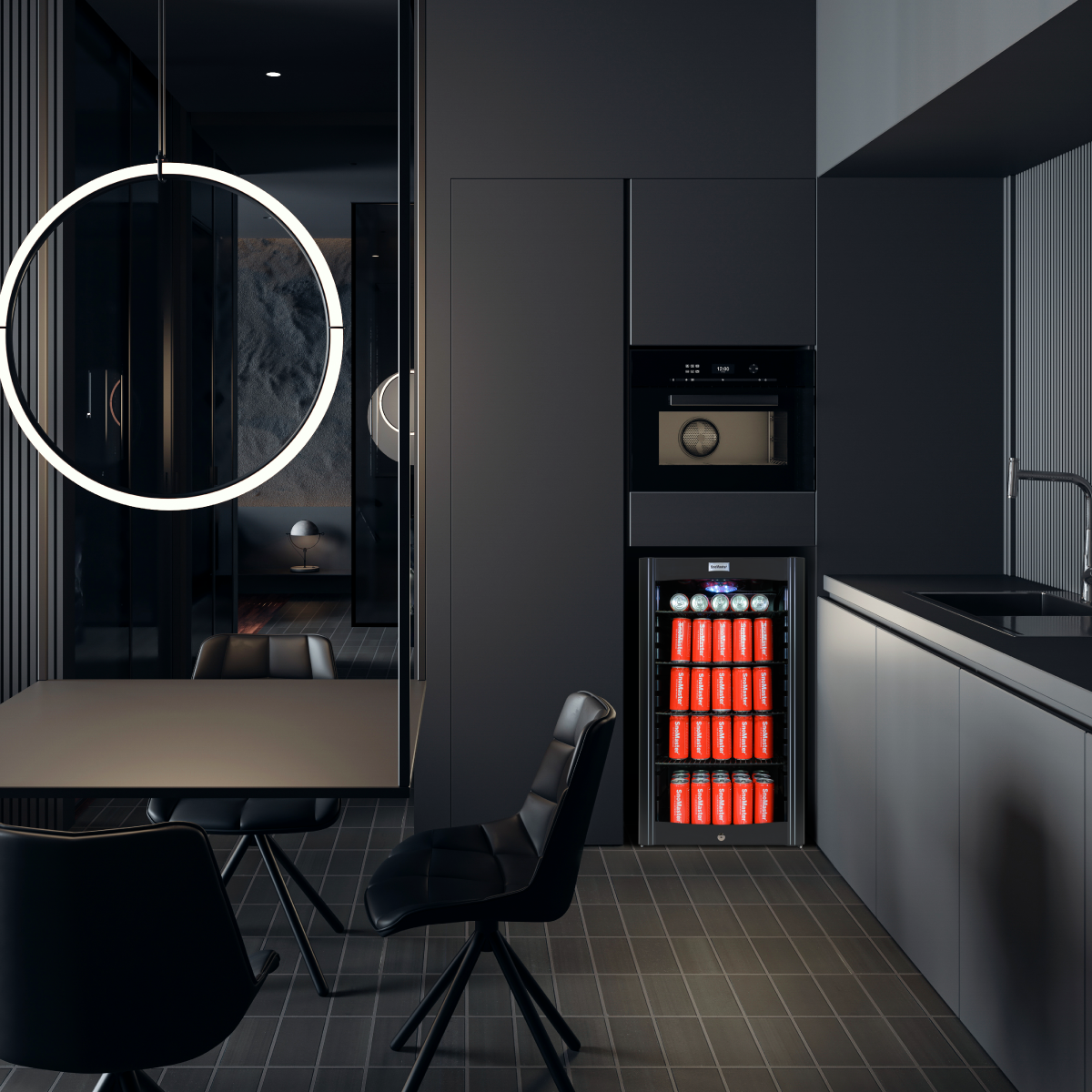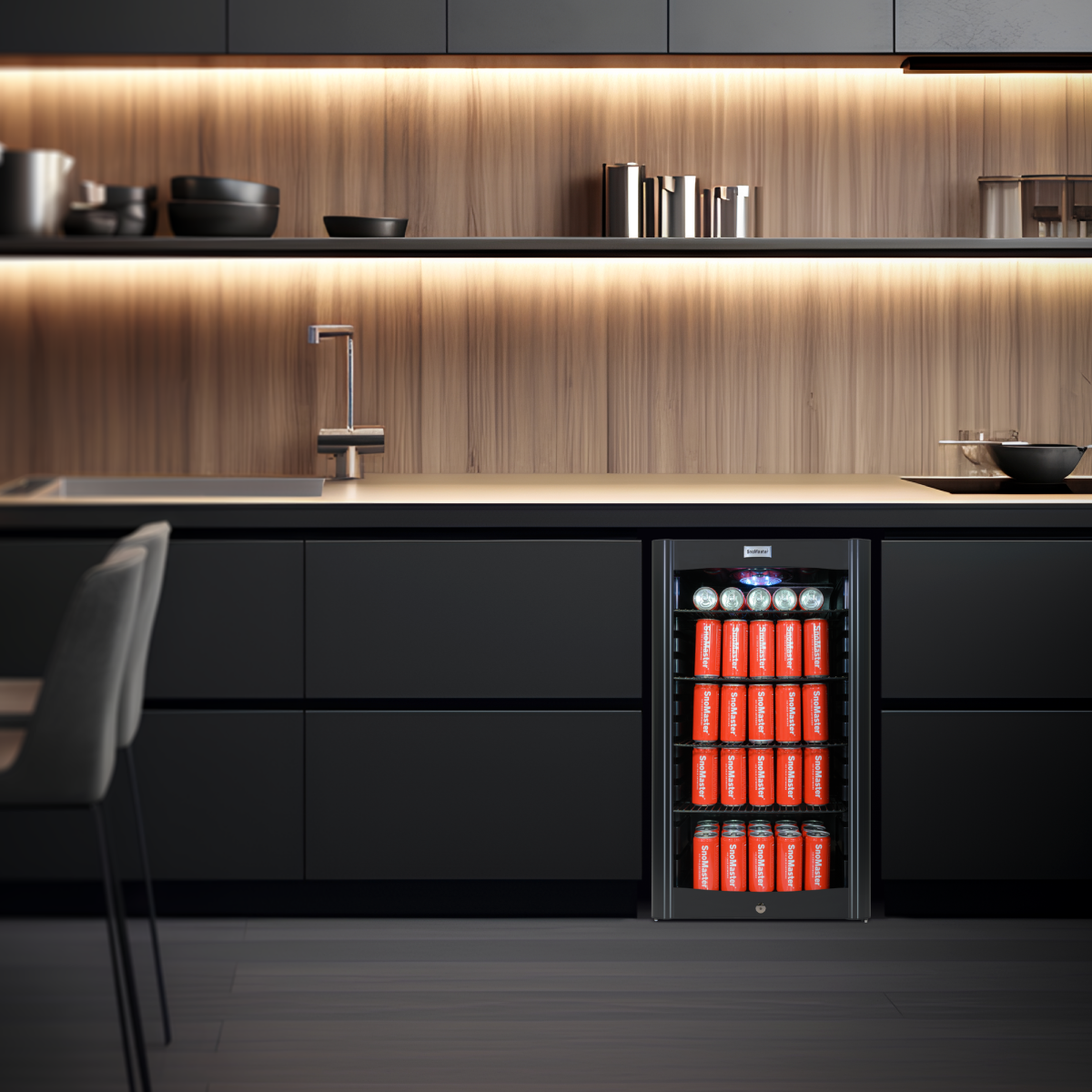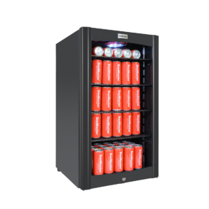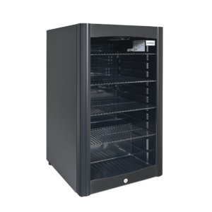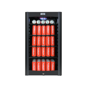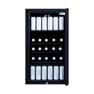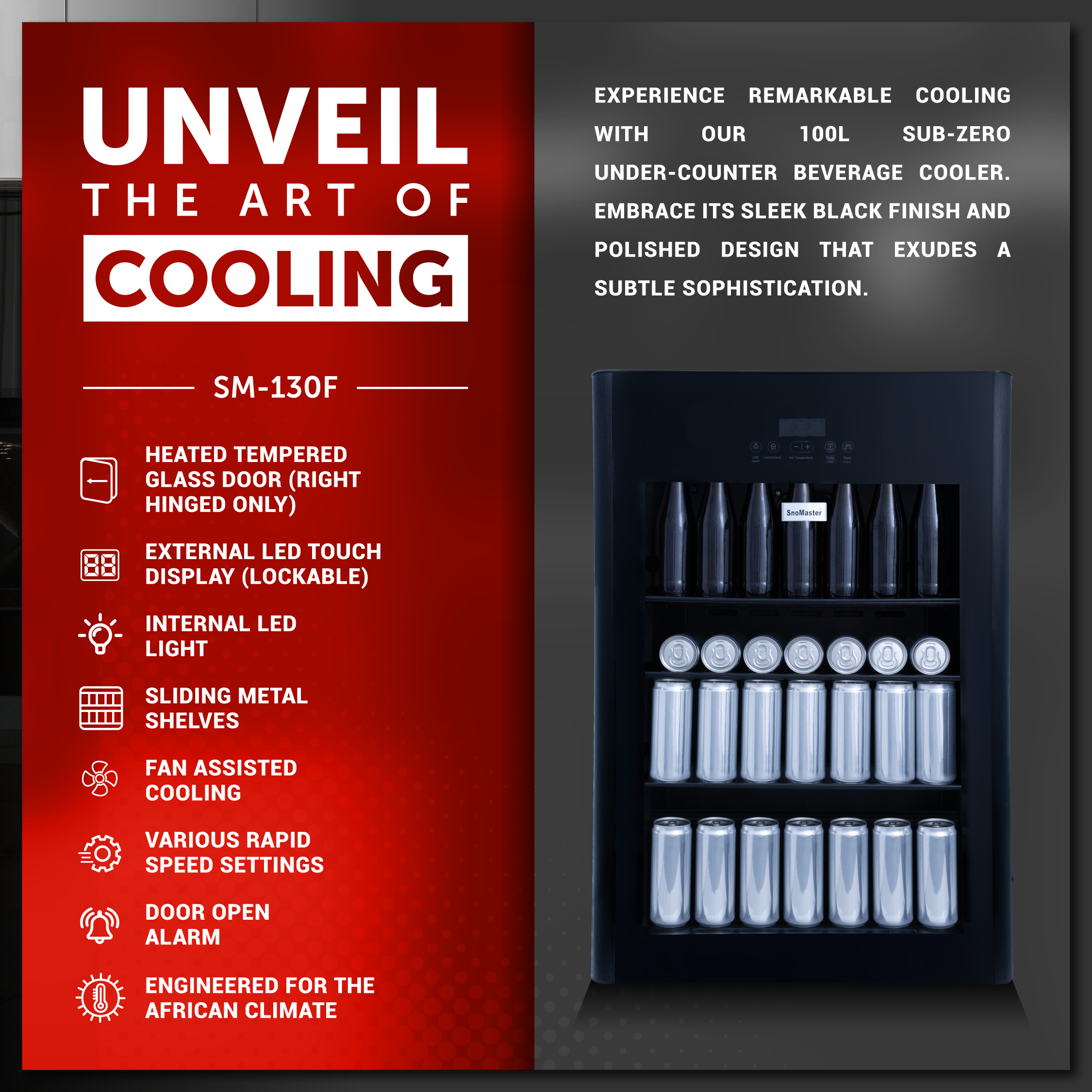 Introducing the SM-100CLASSIC, where timeless design meets exceptional cooling. Crafted in our sleek black finish and driven by SnoMaster’s renowned cooling technology, this beverage cooler effortlessly complements your kitchen, home bar, or office space. Featuring a secure reversible, lockable tempered glass door and an interior LED light, it combines style and functionality to store and display your beverages with elegance.