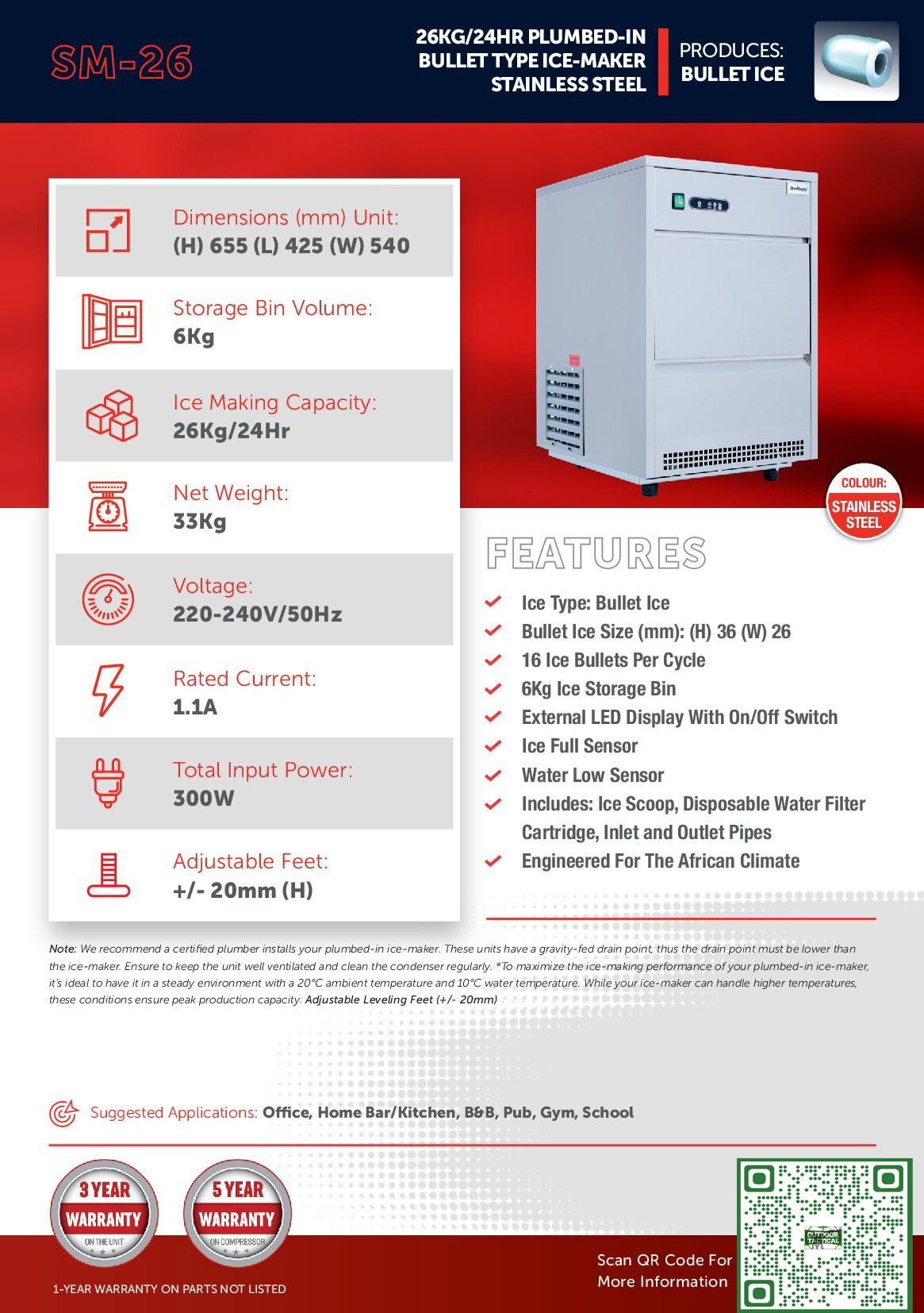 Seize the day with the SM-50 Plumbed-In Ice-Maker, a dual-purpose powerhouse that’s ideal for both home use and small commercial operations. This remarkable unit swiftly…
