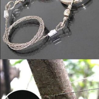 Survival wire saw with 24” stainless steel 4-strand braided chain cord metal. Can be used for cutting wood, plastic, rubber and soft metal.