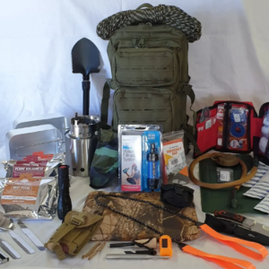 Description 30L Tactical Backpack Water Bottle with Fire Bucket & Pouch Quality Waterproof Poncho Emergency Sleeping Bag 3-in1 Paracord Bracelet Esbit Stove with Fuel Tablets…