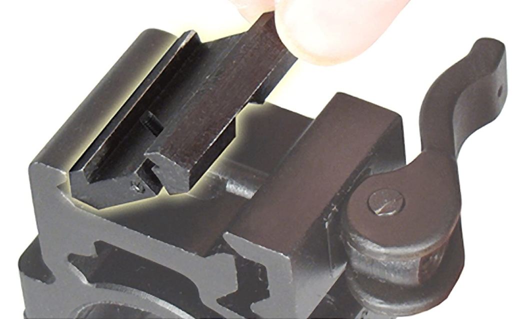 - Top Slot with Spring Tension Retraction/Expansion Design to Snap into Picatinny/Weaver Base